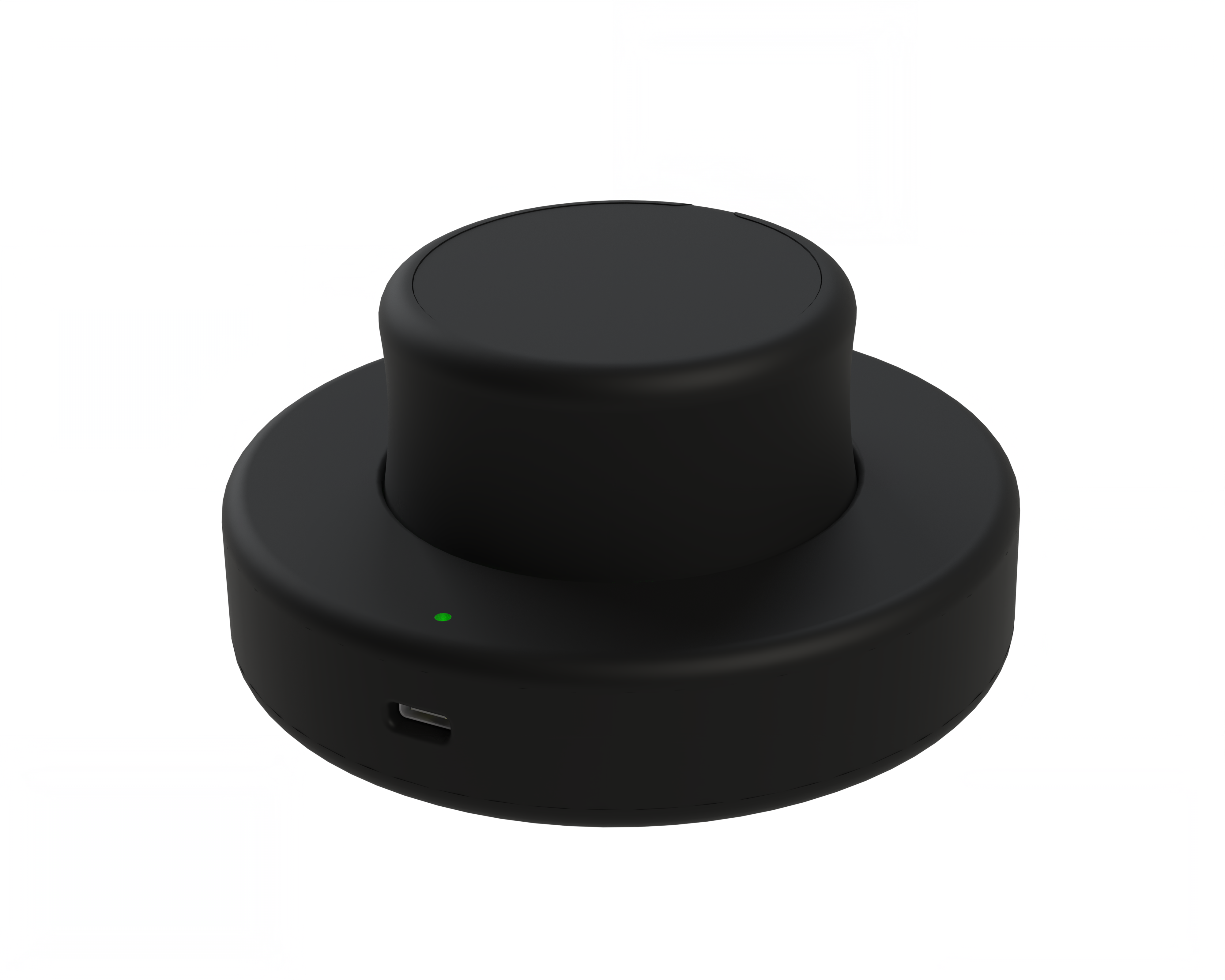 The case exposes the USB-C port for power and features a small hole for a power indication LED. The user button is hidden to preserve the clean appearance of the device but can still be actuated by lightly pressing anywhere in a large region around the LED.