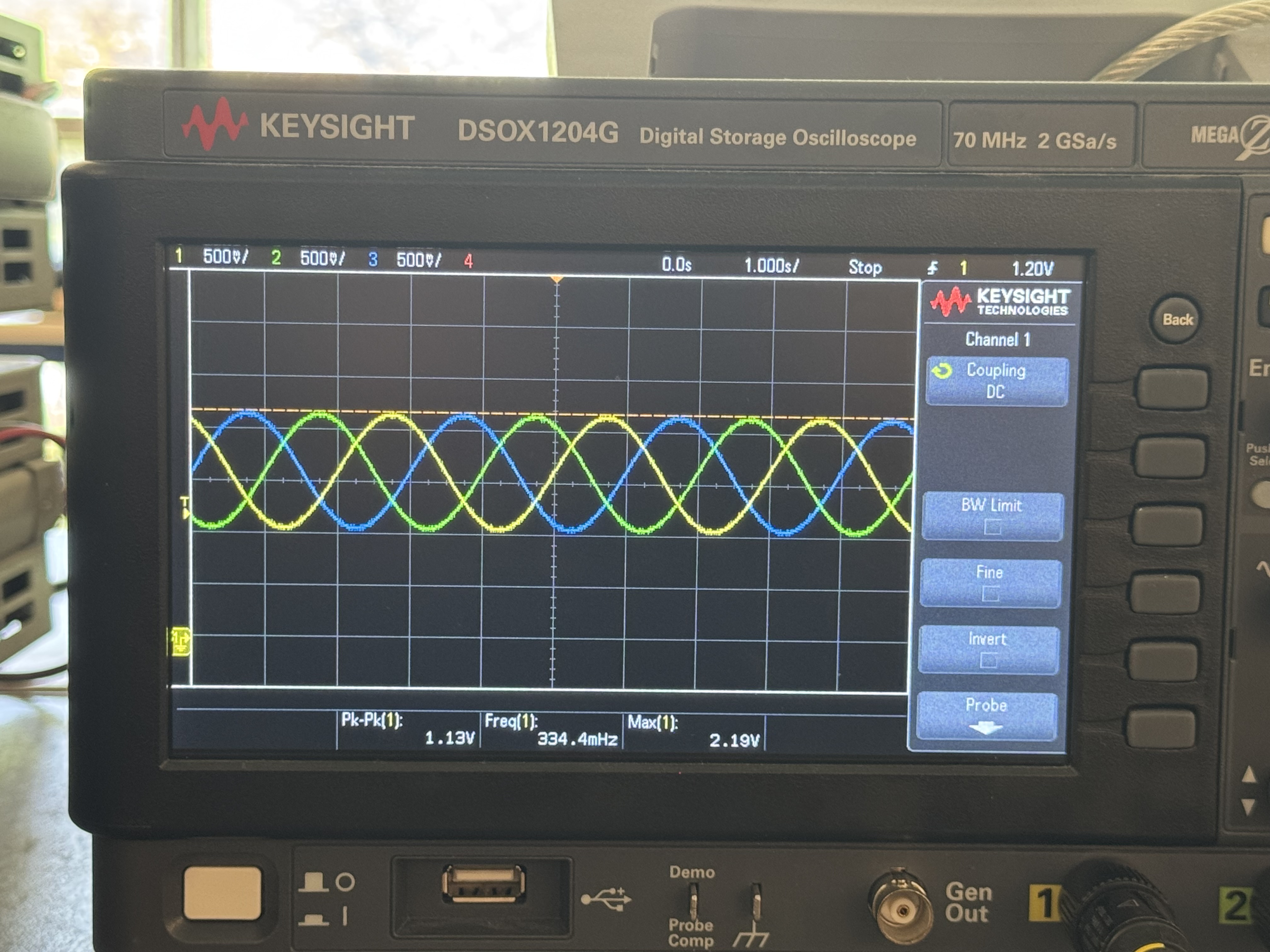 When averaged over time, the signals form clean, 120°-offset sinusoidal waveforms—the hallmark of smooth, precise BLDC control: