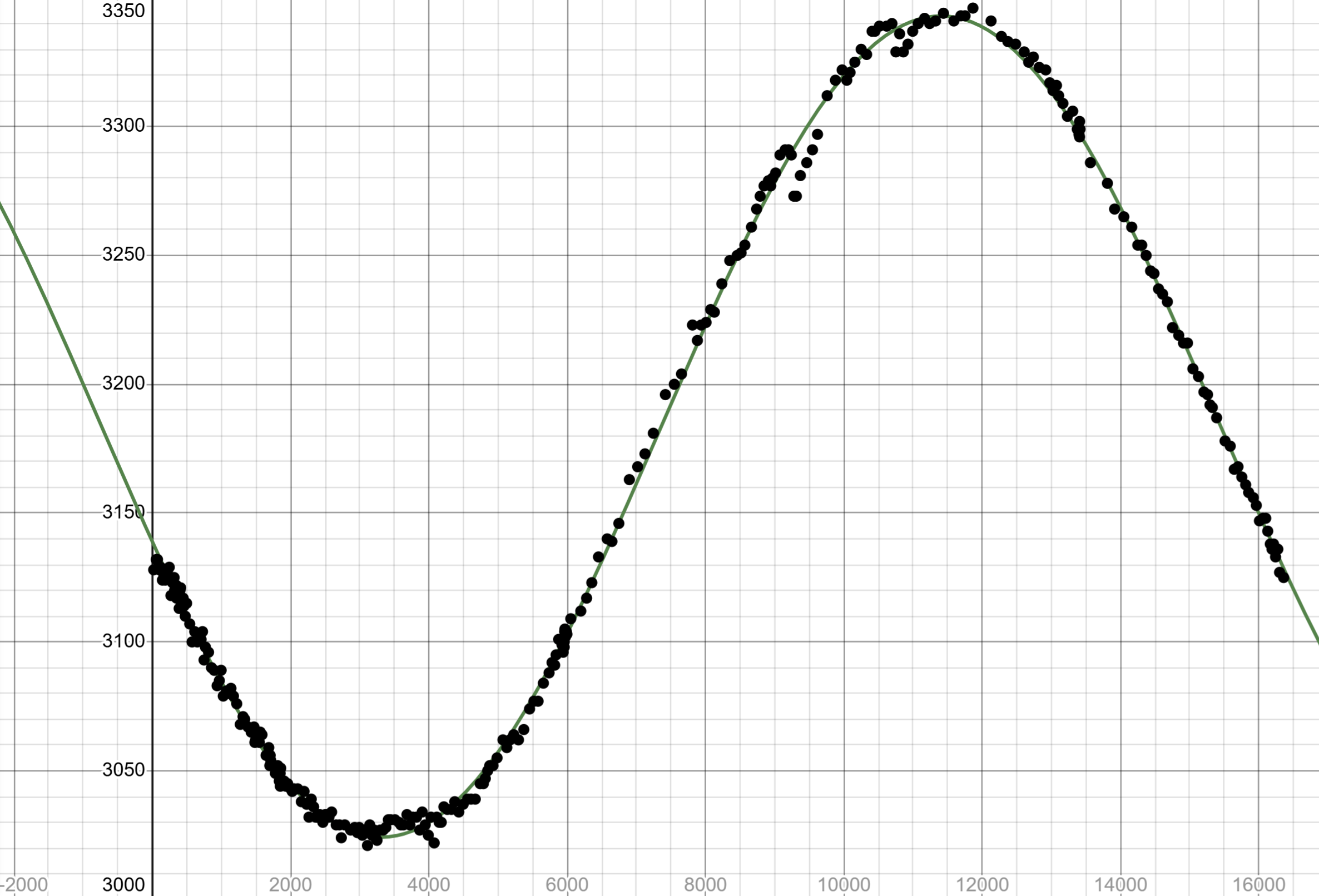 While the two magnets for the different sensors were able to coexist on the same axis, they didn’t operate entirely independently. During testing, the Hall sensor output showed a position-dependent offset caused by the rotating field of the encoder magnet. To correct for this, the ADC value was recorded across a full rotation of the motor with no axial force applied. The result was a clean sinusoidal trend.